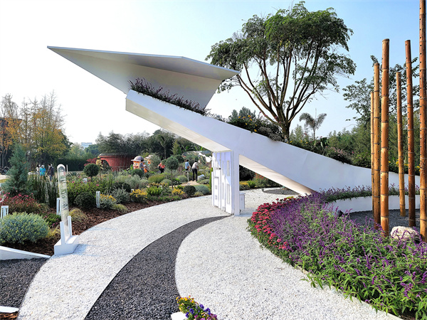 本次花展以花為媒,以主題雕塑、特色裝置、藝術燈光等極具沖擊力的視覺元素,著力塑造極具地域特色的城市花境,充分體現了花境技術、城市形象的完美結合,每一個展園都像一幅帶有城市符號的藝術畫,既有美感,又接地氣,既有靈魂,又有共鳴。