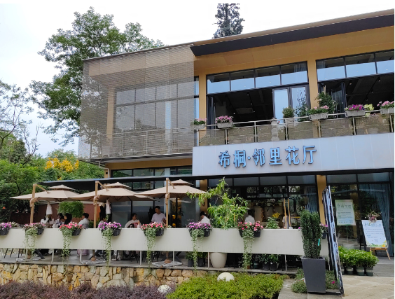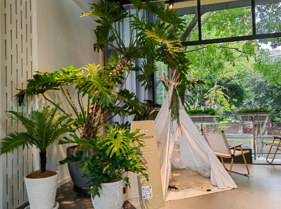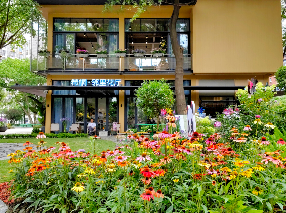 在花園深處的希桐鄰里花廳不僅僅是一個社區花店,更是“社區合伙人”對美好生活向往的價值追求。這是一個可參與、可進入的最美社區花園,能讓居民實實在在地感受各種美好生活場景。當居民走進這鮮花綠植簇擁的花園,看到憨態可掬的蓉寶,都會情不自禁打卡拍照。