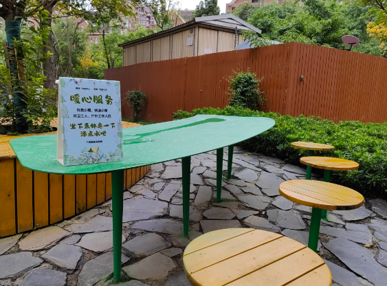 “這是我們社區打造的15分鐘便民生活服務圈的點位之一,設置了環衛工人、快遞外賣員的愛心休息驛站,他們路過的時候可以歇歇腳、喝喝水、賞賞花,每個人在這里都可以發現美、欣賞美、感受美,找到努力追求美好生活的意義?!备弑鐓^黨委副書記王蜀玥告訴記者,社區就是想要依托換新升級后的社區黨群服務中心,為周邊的社區居民提供更加高效便捷的服務,讓居民感受綠色低碳生態花園型社區的美意,樂享花樣幸福生活。