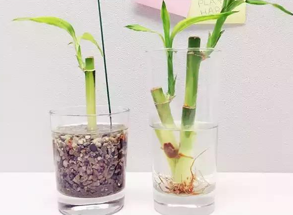 水養富貴竹,講究的自然是水分得當。正常情況下,在富貴竹生根前需要三到四天換一次水,生根后就不用勤換水了,只需要不定期加水就行。另外,水分的多少控制在花瓶的三分之一到三分之二之間即可。