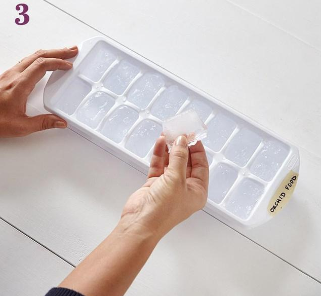 步驟二:搖晃均勻倒入冰塊盤里面,打上標(biāo)記,別讓家人誤食了,放入冰箱
