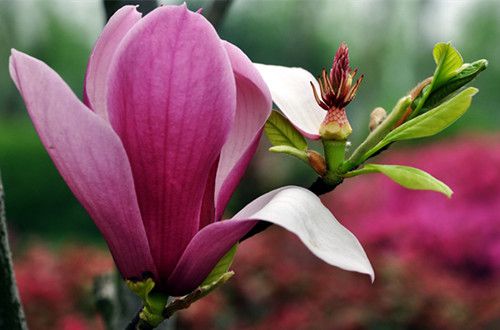 紫玉蘭是木蘭科的落葉性灌木,此植物開花時十分驚艷,葉片都會掉光,只剩下枝條上挺立的朵朵紫玉蘭。紫玉蘭的確是園林觀賞性植物不錯的選擇。