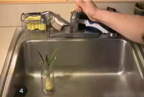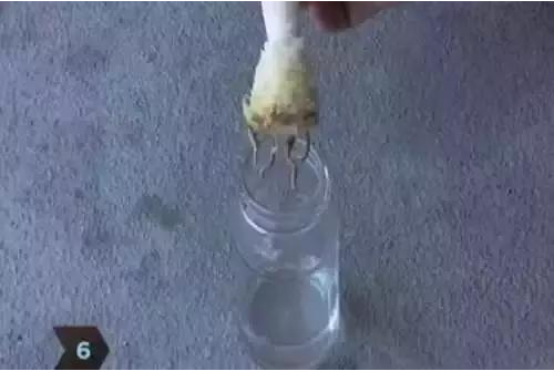 第四步:置于陰涼處晾幾天后,放進一個玻璃杯或合適的瓶子里水培,水的高度要高于白色莖部的一半但低于葉子的基部。