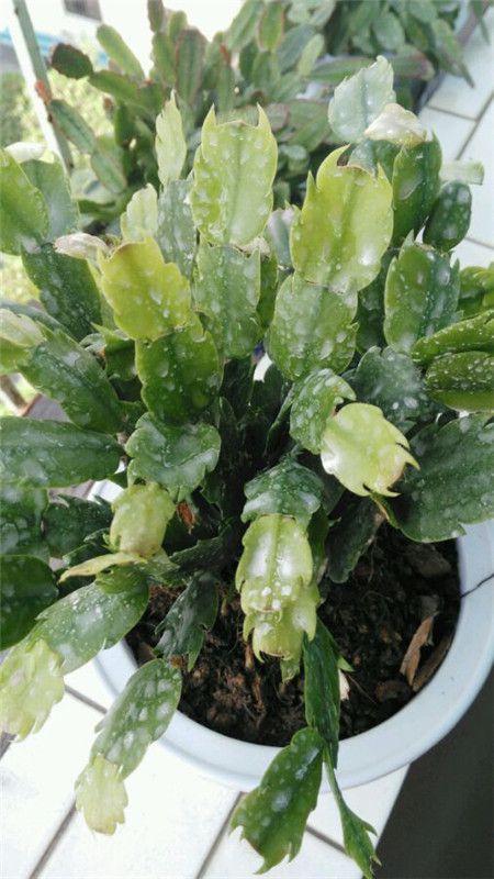 這個(gè)蟹爪蘭已經(jīng)明顯被蚧殼蟲(chóng)占領(lǐng)了。