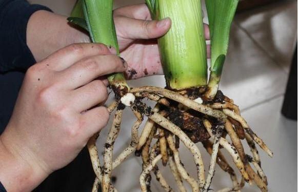 1、將君子蘭母株從盆中取出,取代根部的土壤,仔細(xì)觀察可以分株根系。